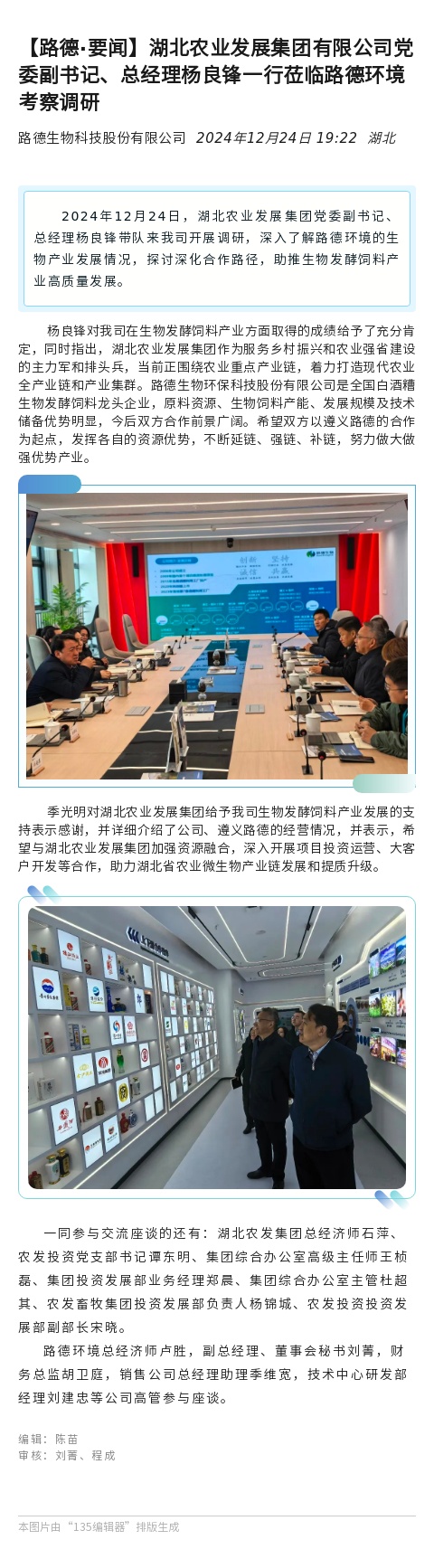 ¡¾15vipÌ«Ñô¼¯ÍÅ¡¤ÒªÎÅ¡¿ºþ±±Å©Òµ·¢Õ¹¼¯ÍÅÓÐÏÞ¹«Ë¾µ³Î¯¸±Êé¼Ç¡¢×ܾÀíÑîÁ¼·æÒ»ÐÐݰÁÙ15vipÌ«Ñô¼¯ÍŹÙÍø¿¼²ìµ÷ÑÐ