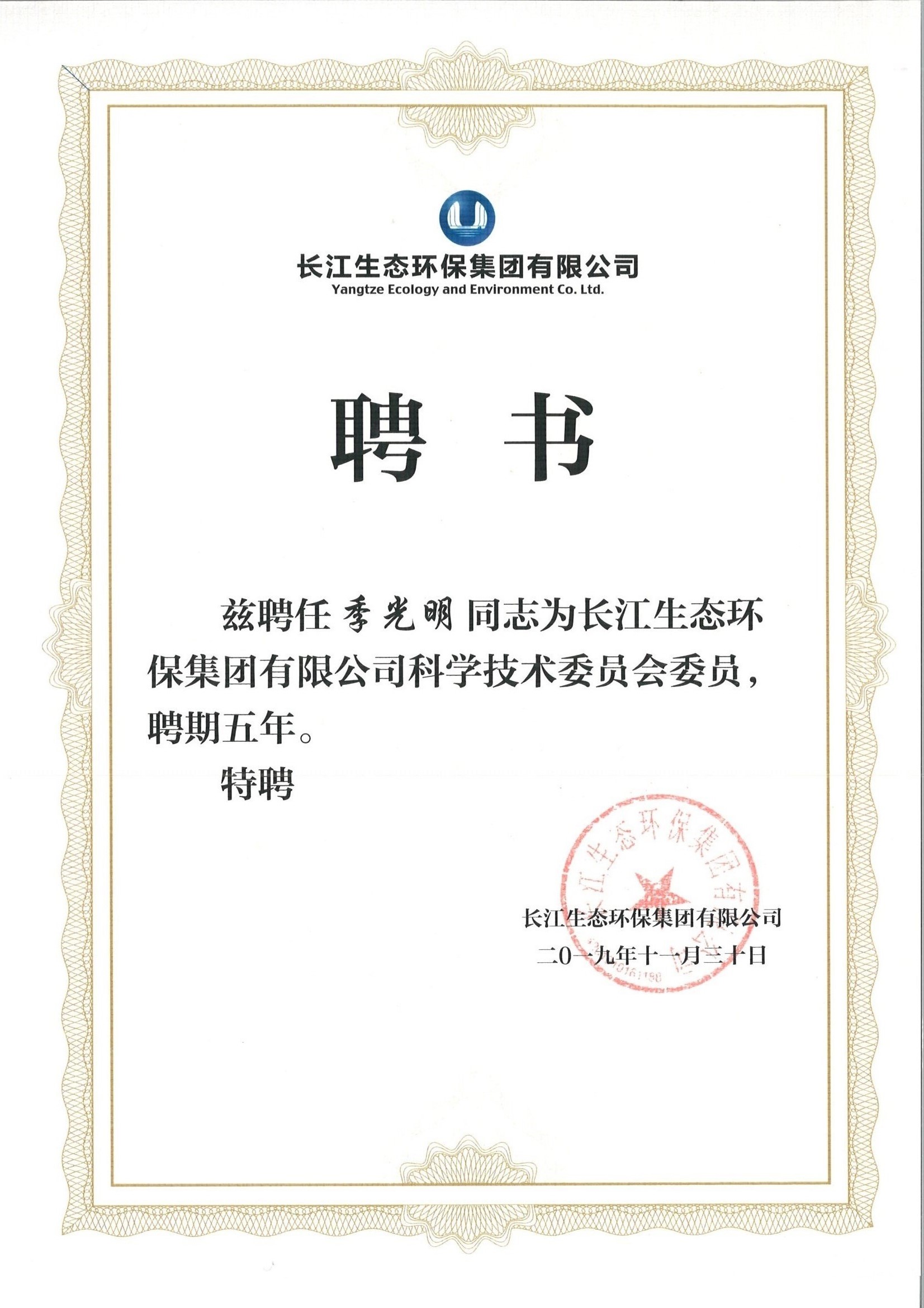 ½üÈÕ£¬¼¾¹âÃ÷¶Ê³¤ÊÜÑû³öϯÁ˳¤½Éú̬»·±£¼¯ÍÅÓÐÏÞ¹«Ë¾£¨ÒÔϼò³Æ¡°³¤½»·±£¼¯ÍÅ¡±£©¿ÆÑ§¼¼ÊõίԱ»á³ÉÁ¢´ó»á£¬²¢»ñƸ³¤½»·±£¼¯ÍÅ¿ÆÑ§¼¼ÊõίԱ»áίԱ¡£